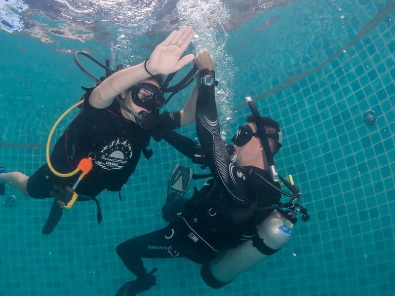 Steps for the PADI Cramp Release Scuba Diving Skill